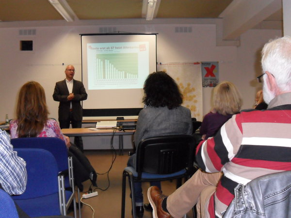 Im Nachgang zu ihrem Besuch in Berlin und beim Deutschen Bundestag bat mich die Gruppe des Allgemeinen Deutschen Fahrradclubs um eine Vortragsveranstaltung zum Konzept der LINKEN zur Solidarischen Rentenversicherung. Dieser Bitte kam ich gerne nach und am 26.10.2012 fanden sich rund zwanzig Mitglieder des ADFC in den Fraktionsräumen der LINKEN im Rat der Stadt Köln ein und informierten sich über die tieferen Inhalte unseres Konzeptes.