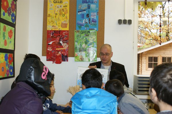 In der Amaro Kher-Schule für Roma- und Sinti-Kinder in Köln las ich den Kids aus dem Buch „Das kleine ich bin ich“ von Mira Lobe und Susi Weigel (http://de.wikipedia.org/wiki/Das_kleine_Ich-bin-ich) vor.