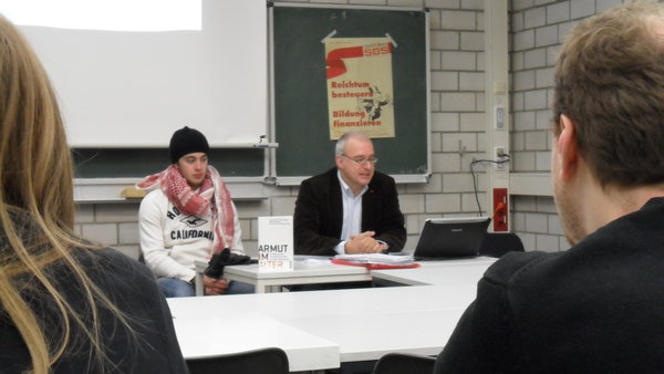 Heute stand beim SDS Kongress "Kapitalismus vs. Demokratie" bei einem der vielen Workshops am Samstag morgen auch das Thema Armut im Alter auf dem Programm. Ich finde es besonders wichtig mit jüngeren Leuten über das Thema Rente/Altersarmut ins Gespräch zu kommen. Denn: Wenn sich die Arbeitsmarkt, Lohn- und Rentenpolitik heute nicht ändert, betrifft das morgen diejeinigen, die heute noch garnicht an die Rente denken.