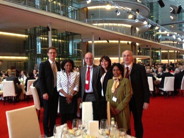 Den ganzen Tag lang feierten Abgeordnete des Deutschen und des Französischen Parlaments das 50jährige Jubiläum der Unterzeichnung des Élysée-Vertrages. Nach einem Empfang am Vormittag im Reichstag führten mein Fraktionskollege Paul Schäfer und ich bei einem gemeinsamen Mittagessen in der "Halle des Volkes" im Paul-Löbe-Haus interessante Gespräche über soziale und parlamentarische Fragen mit zwei sozialistischen Abgeordneten der Insel Réunion, Mme. Monique Orphé und Mme. Ericka Bareigts, sowie den CDU-Abgeordneten Mechthild Heil und Dr. Carsten Linnemann. Anschließend fand eine zweistündige gemeinsame Sitzung der Angehörigen der beiden Parlamente im Plenarsaal des Deutschen Bundestages statt. Nach einem abschließenden Konzert in der Berliner Philharmonie ging es für die französischen Abgeordneten am Abend wieder zurück in ihre Heimat.