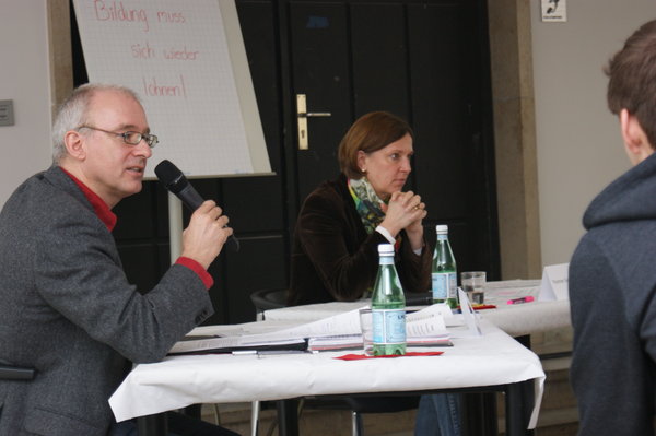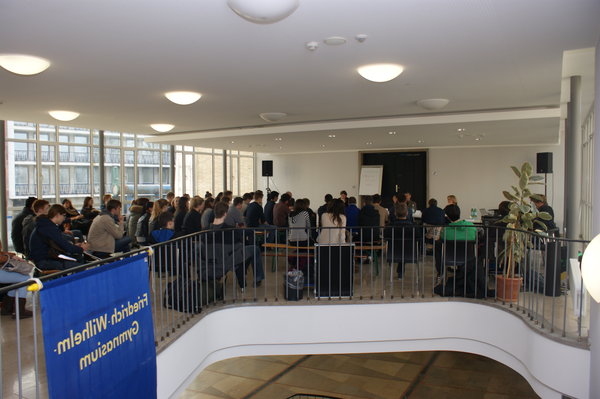 Für den Freitag, den 08. März 2013 hatten die Schülerinnen und Schüler der Leitungskurse Sozialwissenschaften des Friedrich-Wilhelm-Gymnasiums Köln in Eigenregie eine Podiumsdiskussion zu Bundestagswahlthemen organisiert, an der ich für DIE LINKE teilnahm. Meine Mitdiskutanten und -diskutantinnen waren Mitglieder der Ausschüsse Jugend und Weiterbildung aus dem Landtag Nordrhein-Westfalens, sowie Ratsmitglieder der Stadt Köln. Themen wie „verkürzte gymnasiale Schulzeit von G9 auf G8“ oder „Pro und Contra der Studiengebühren“ wurden von ca. 60 Schülerinnen und Schülern heftig diskutiert. Ich – obwohl fachfremder Bundespolitiker - konnte deutlich machen, dass die skandinavischen Länder mehr in die Bildung ihrer jungen Menschen investieren und wir in Deutschland da dringenden Nachholbedarf haben. Das Kooperationsverbot zwischen Bund und Ländern erschwert diese Möglichkeiten. Bei der Veranstaltung wurde auch deutlich, dass eine „Schule für Alle“ und gemeinsames längeres Lernen für die gegenseitige Akzeptanz und Entwicklung der Jugendlichen notwendig sind.