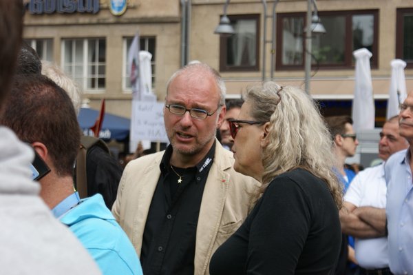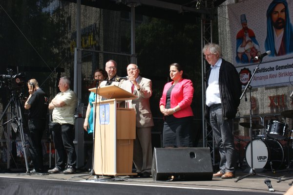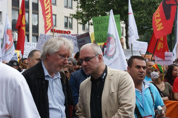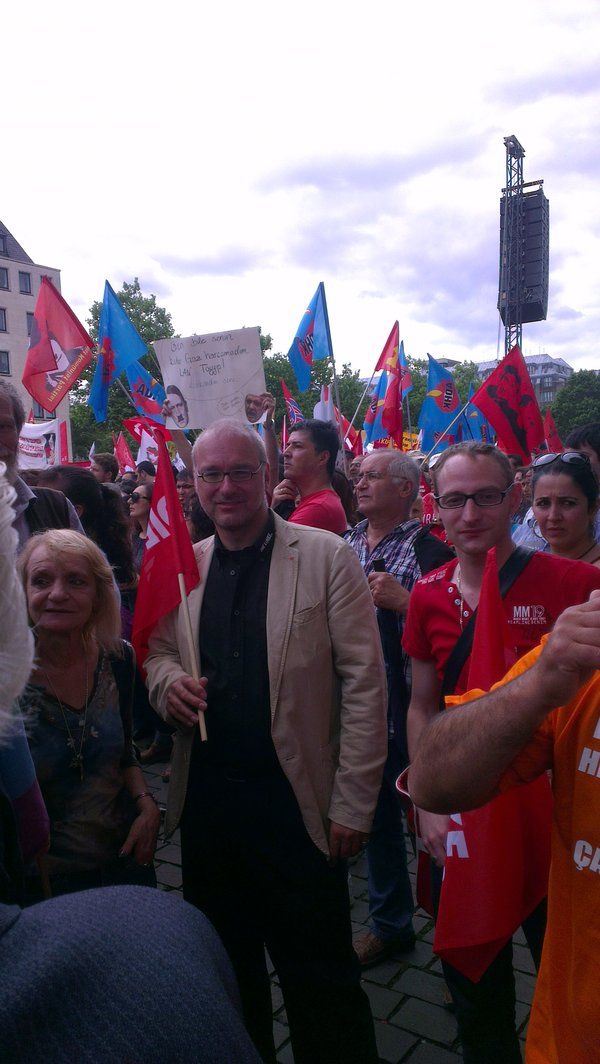 Mehr als 40.000 Menschen folgten dem Aufruf der "Alevitischen Gemeinde Deutschlands" und kamen zum Heumarkt. Mehrere Vertreter_innen der LINKEN in Köln, der Linksfraktion im Deutschen Bundestag, Linksjugend ['solid] und LINKE. SDS waren vor Ort und haben ebenfalls ihre Solidarität kundgetan. Gregor Gysi (Fraktionsvorsitzender der LINKEN im Deutschen Bundestag), Matthias W. Birkwald (MdB), Sevim Dagdelen (MdB), Jürgen Klute (MdEP) und Yesim Yesil-Bal, LINKE Bezirksvertreterin in Köln Ehrenfeld grüßten die Demonstrierenden von der Bühne aus. Sie verurteilten die willkürliche Polizeigewalt gegen die Protestierenden in der Türkei und forderten die Bundesregierung auf, die polizeiliche, geheimdienstliche und militärische Zusammenarbeit mit der Türkei einzustellen.