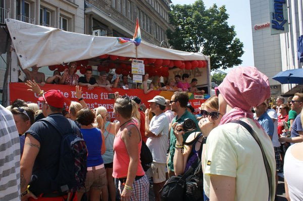 Unter dem Moto: "Wir sind. So oder so." zogen am Sonntag, dem 07. Juli 2013 86 Gruppen und 113 Wagen und Fußgruppen durch die Kölner Innenstadt. Bei schönstem Sonnenwetter fanden rund 900.000 Menschen den Weg in die Kölner City und feierten eine bunte, vielfältige, laute und schrille Demo-Party zur rechtlichen Gleichstellung von Schwulen und Lesben. Bei Themen wie Adoptionsrecht, Ehe statt Lebenspartnerschaft oder Homophobie im Sport handelt es sich nur um einen kleinen Ausschnitt der politischen Forderungen.