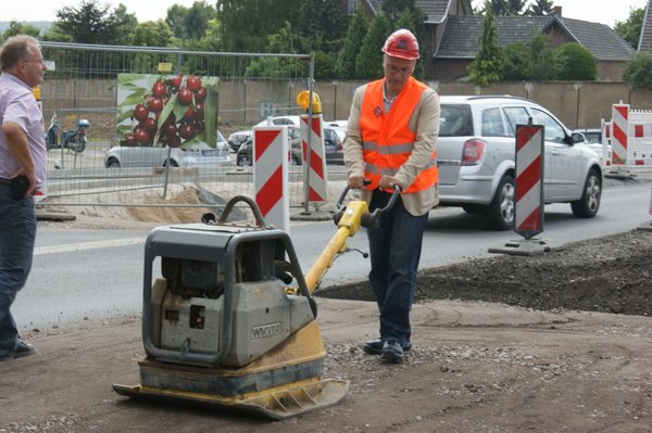 Auf der ersten Baustelle, der Anlegung eines Kreisverkehrs, bekam ich die Gelegenheit, eine fast eine Tonne schwere Rüttelplatte auszuprobieren, die meine Knochen auch gleich ordentlich durchschüttelte. Ebenfalls das Verlegen von Kantsteinen im Akkord ist alles andere als knochen- und gelenkschonend. Auf Baustelle Nummer zwei, der Erneuerung eines Abwasserkanals, versuchte ich mich an einem Motorstampfer, eine überaus gefährliche Arbeit.
