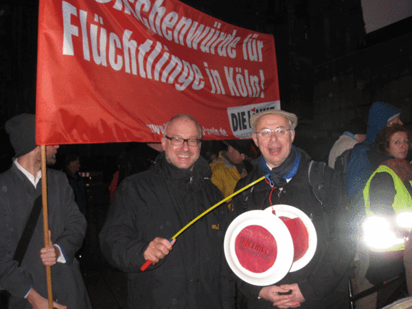 „Dass viele Kölner Künstlerinnen und Künstler und auch der Oberbürgermeister sich an der Seite der notleidenden Flüchtlinge in Köln gegen die rassistische Hetze stellen, ist ein ermutigendes Zeichen. Von Oberbürgermeister Roters erwarte ich, dass seiner Ankündigung, die Stadt werde am Konzept einer menschenwürdigen dezentralen Unterbringung von Flüchtlingen festhalten, bald auch Taten folgen,“ lautet das Fazit von Matthias W. Birkwald zu der eindrucksvollen Aktion.