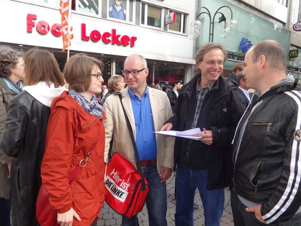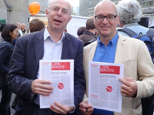 Gemeinsam mit 300 Kölnerinnen und Kölnern protestierte ich am Internationalen Aktionstag in Köln vor der Antoniterkirche auf der Schildergasse gegen die Freihandelsabkommen TTIP, CETA und TISA. Unterstützt von Klaus dem Geiger, den Pappnasen Rut-schwarz und den von Pfarrer Hans Mörtter vorgetragenen "Luthers neuen Thesen" war der Aktionstag am sonnigen Samstag ein gelungener Auftakt für die Unterschriftensammlung zur selbstorganisierten Europäischen Bürgerinitiative, die von Ihnen und Dir auch online unterschrieben werden kann.