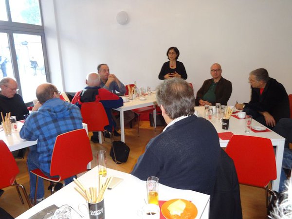 Beim zweiten LINKEN Frühschoppen in meinem Kölner Wahlkreisbüro informierte Hamide Akbayir, Kölner Ratsmitglied der LINKEN mit kurdischen Wurzeln, die 25 gespannt Zuhörenden über die Lage in der von der islamistischen Terrormiliz – oder auch dem djihadistischen Staatsbildungsprojekt - IS belagerten kurdischen Stadt Kobane und die kurdische Selbstverwaltung in der nordsyrischen Region Rojava.