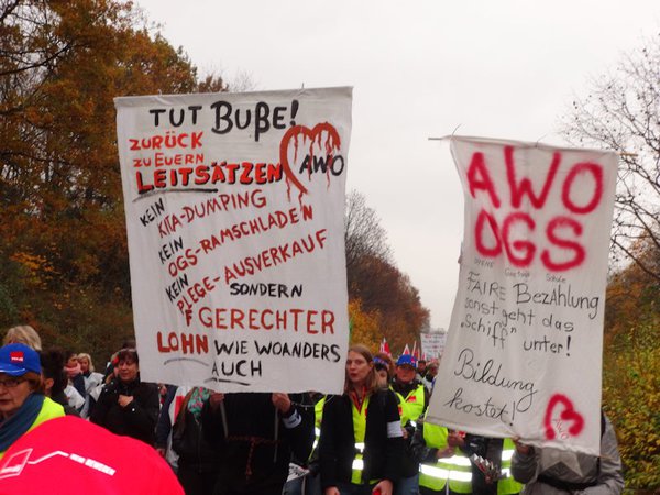 Wie es Eure Kolleginnen und Kollegen im öffentlichen Dienst in diesem Jahr bereits durchgesetzt haben, braucht auch Ihr als Beschäftigte in den Pflegeheimen und Kindertagesstätten der AWO mehr Geld in der Tasche. Das gilt erst recht, weil die dort überwiegend von Frauen geleistete anspruchsvolle und unverzichtbare Arbeit immer noch unterbezahlt und gesellschaftlich unterbewertet wird.